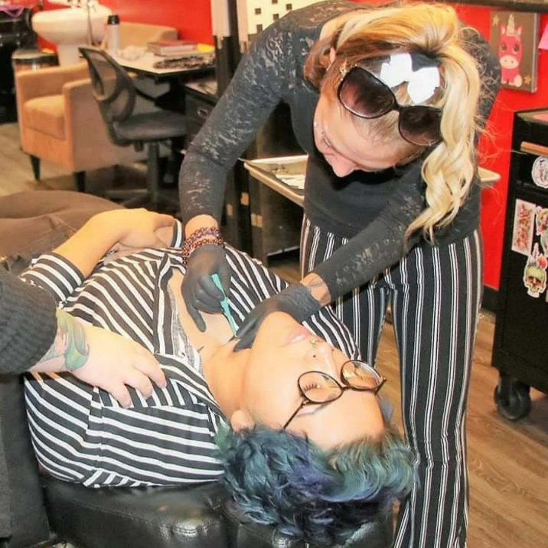 We are a women owned tattooing and piercing shop on South Broadway in Denver. One of our biggest goals is to be the shop that people aren’t intimidated coming into. That people are comfortable being in. People often even bring their kids in and we welcome that (a lot of tattoo shops aren’t kid-friendly).